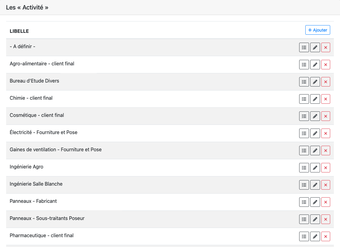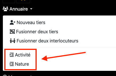 Les activités et les natures, permettent de trier les tiers en fonction de divers catégories. Cela peut aider