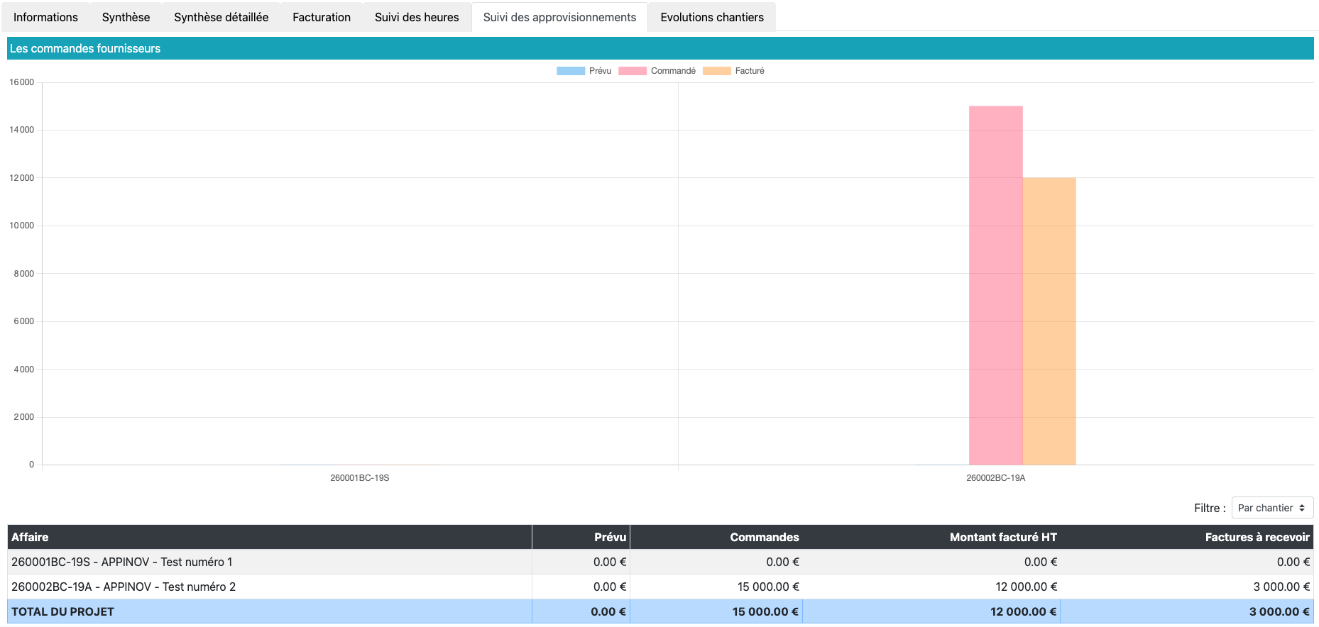 Lâonglet Suivi des approvisionnements offre une vue synthĂ©tique :