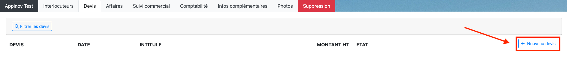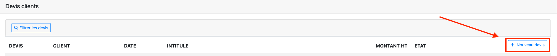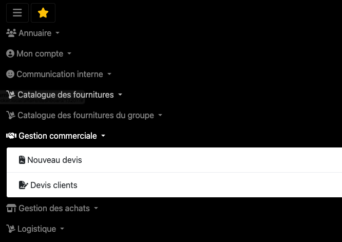 Afin d'y accéder il suffit de se rendre sur le menu déroulant et de cliquer sur la partie Gestion commerciale puis Nouveau devis.