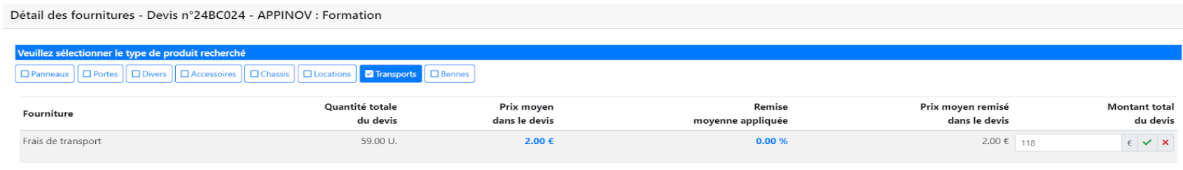Vous avez prĂ©vu 118 ⏠de transport mais vous estimez que ce nâest pas suffisant. PlutĂŽt que de corriger chaque ligne transport, vous ajustez le total dâun seul coup.