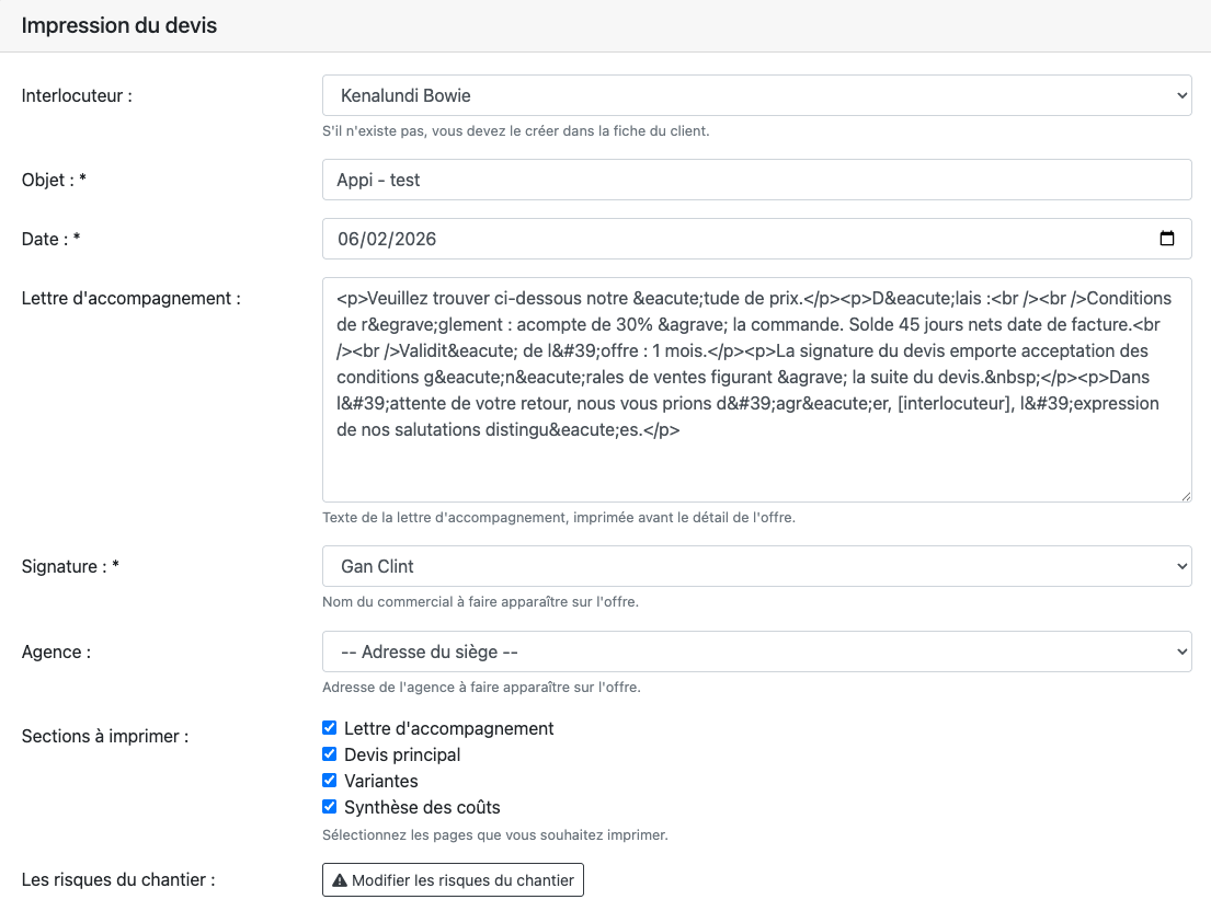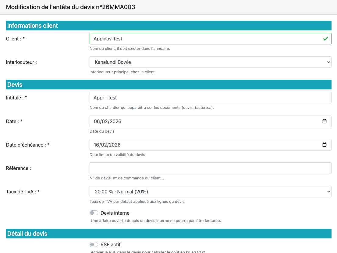 âïž Bouton « Modifier lâen-tĂȘte du devis »Â