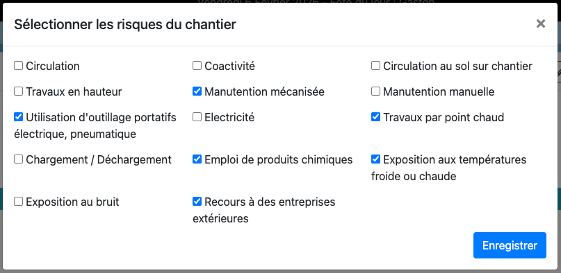 â ïž Bouton « SĂ©lectionner les risques chantier »