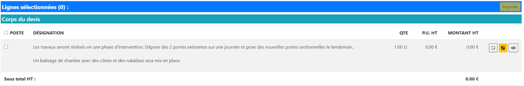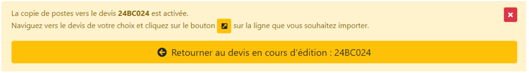 De retour sur votre devis, fermez la fenêtre d’import avec la croix rouge.