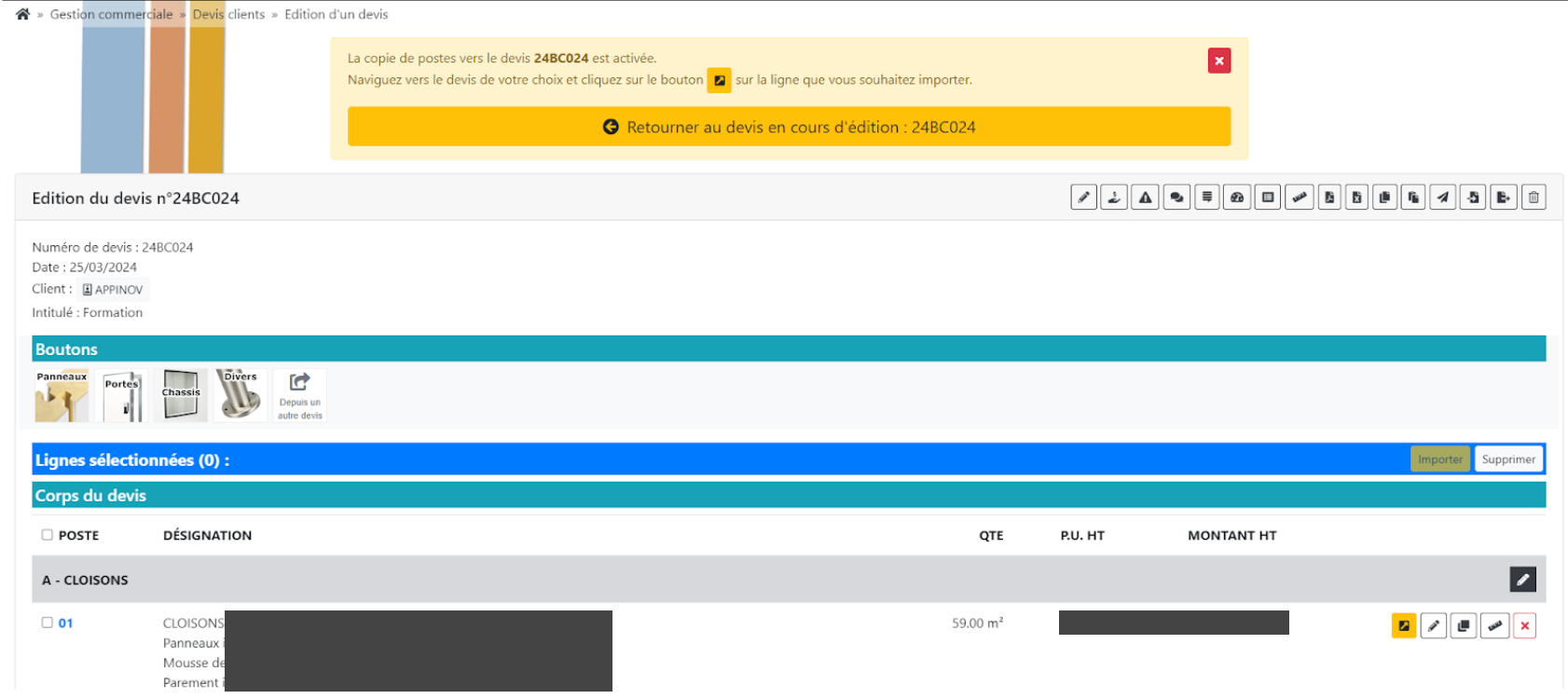 Gagner du temps en réutilisant des postes déjà chiffrés sur un devis existant.
