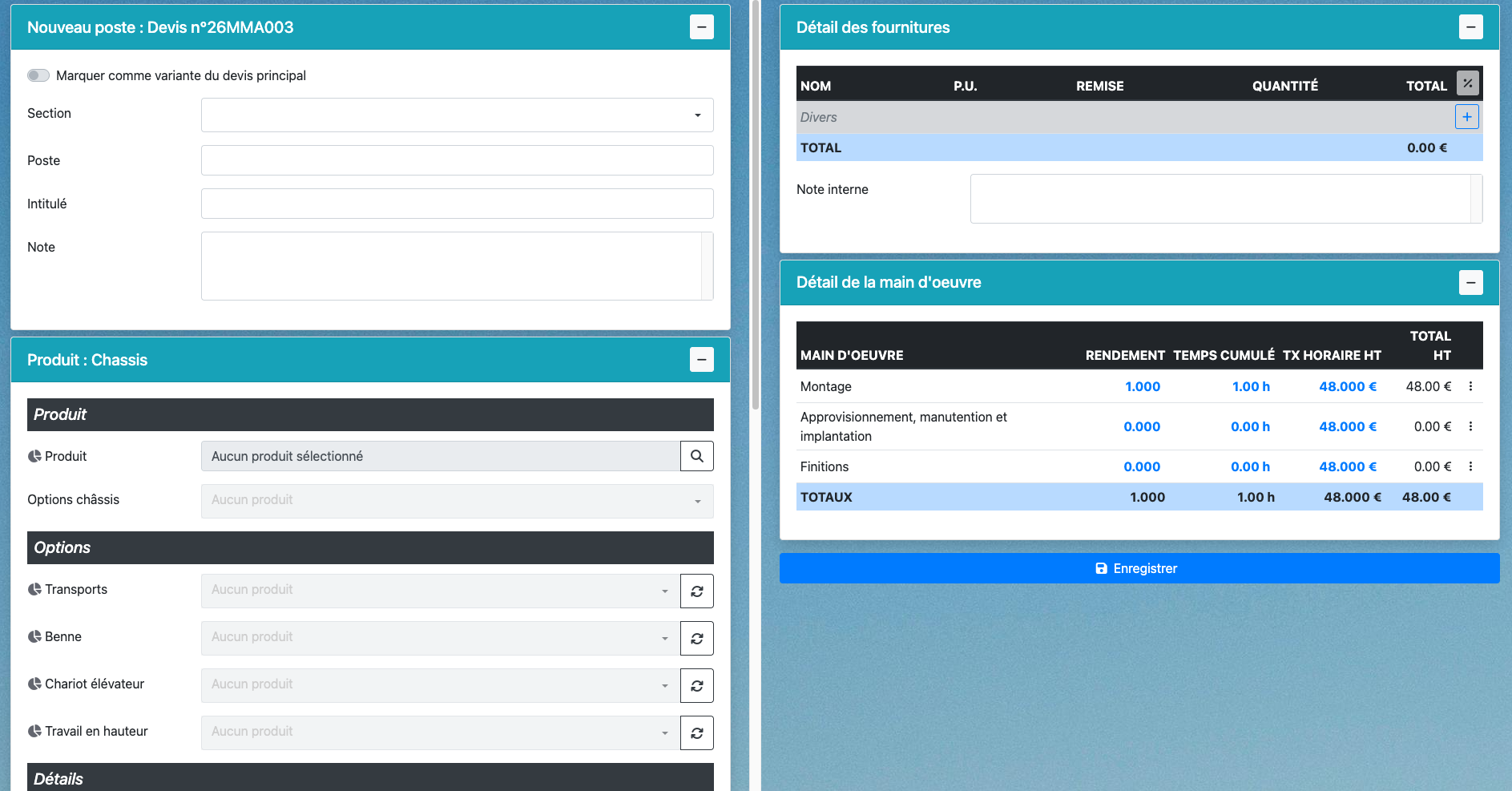 ⚠️ Bonne pratique Pensez à inclure du transport dans les postes portes/châssis pour couvrir les chevalets facturés par le fournisseur.