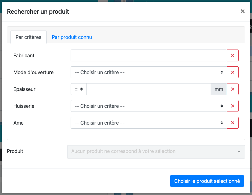 Cliquez sur la loupe pour choisir le produit.