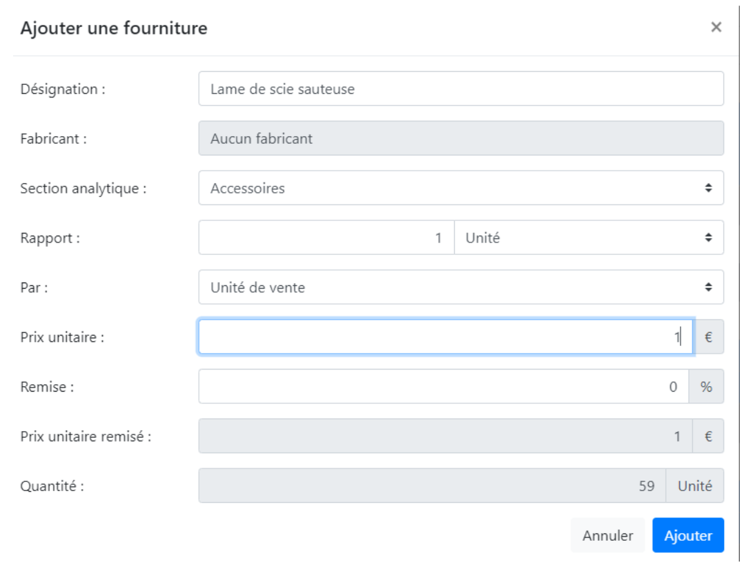 Ajouter des coûts non standard (ou non présents au catalogue) dans un poste panneaux.