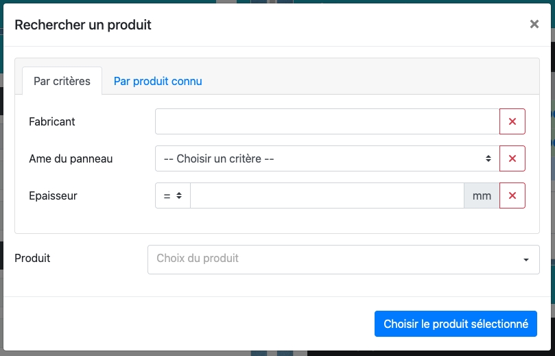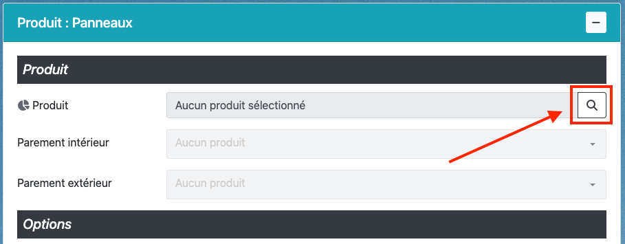 🔎 Poste Panneaux : choisir le produit (recherche & parements)