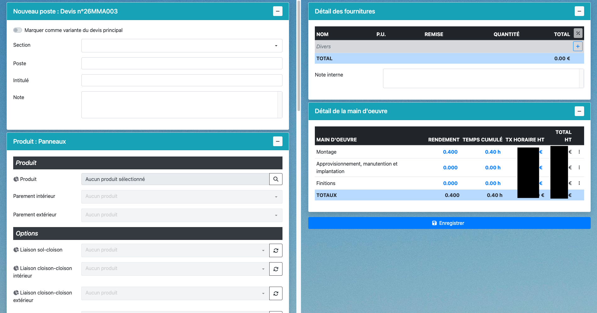 Comprendre la structure d’un poste panneaux et savoir où saisir : structure, produit, métrés, prix, fournitures, main d’œuvre.