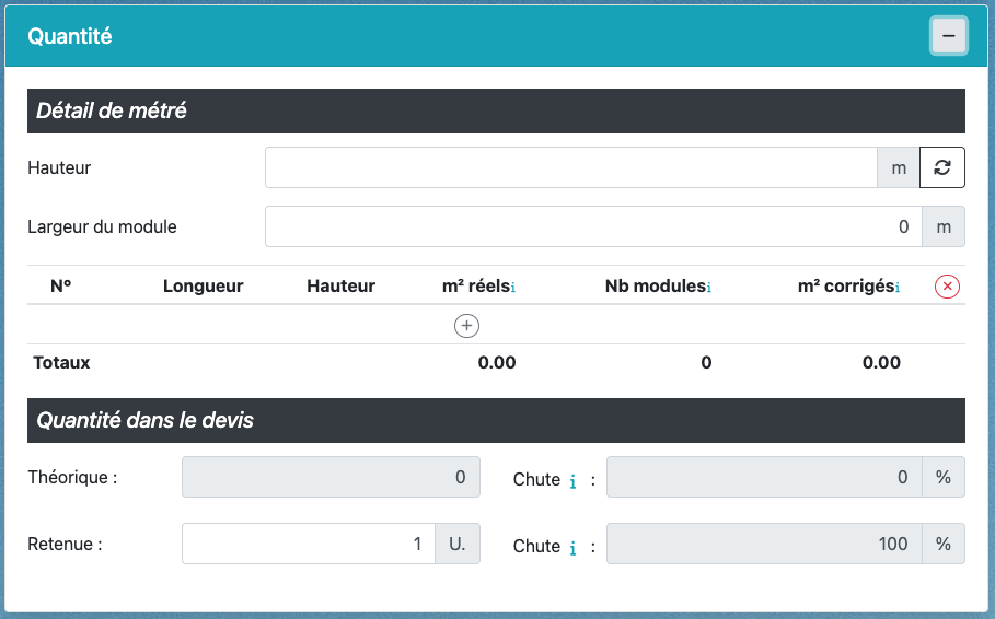 Quantité : métrés