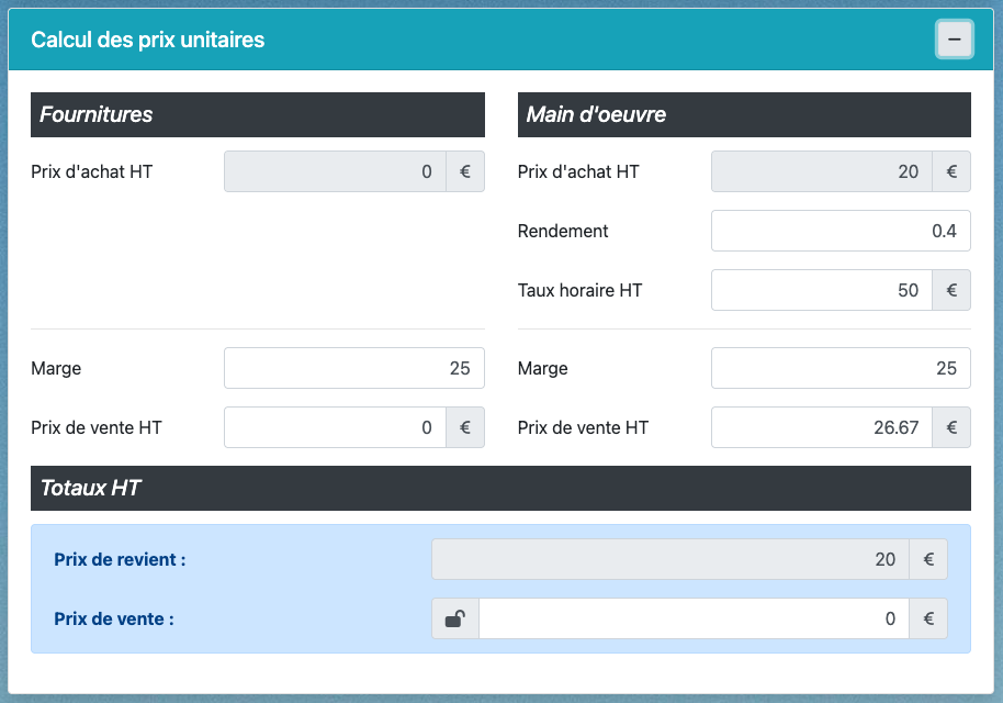 💰 Bloc « Calcul des prix unitaires »