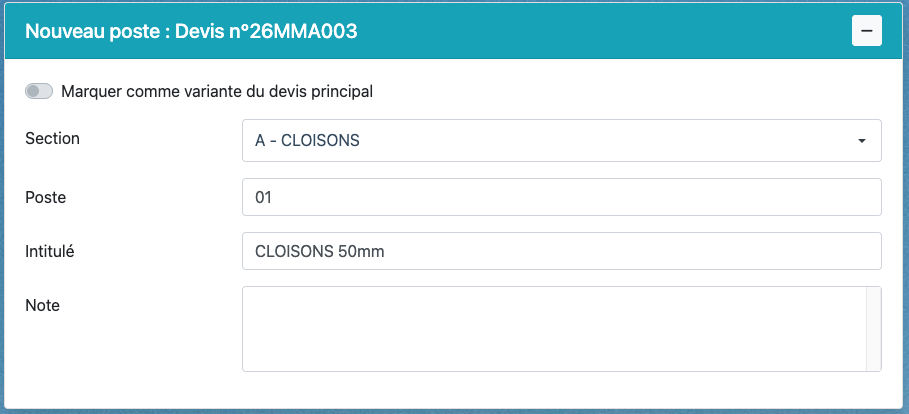 Poste : numéro du poste dans la section.
