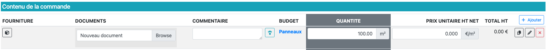 Les lignes peuvent être ajoutées via le bouton Ajouter.