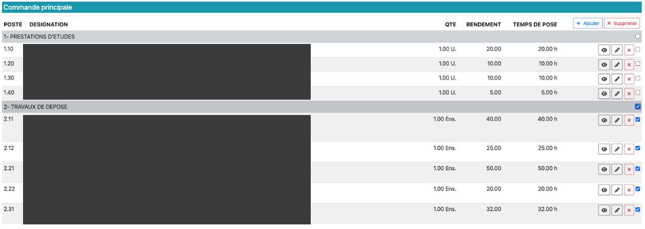 Pour affiner le contenu d’une phase, cliquez sur Modifier afin d’ouvrir le détail d’un poste.