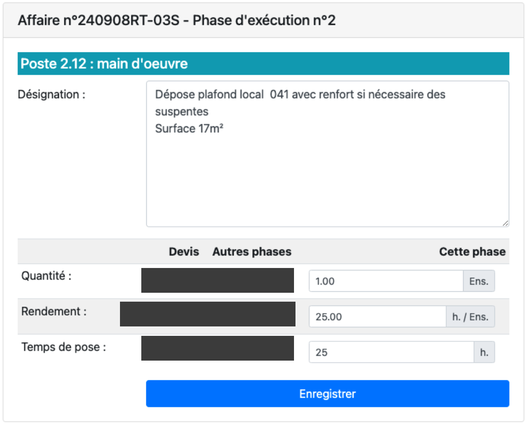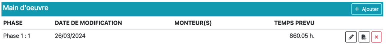 Une seule phase de main d’œuvre est créée et regroupe l’ensemble des heures prévues au devis.