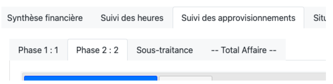 Pour chaque phase d’approvisionnement, un onglet spécifique est créé dans le Suivi des approvisionnements.