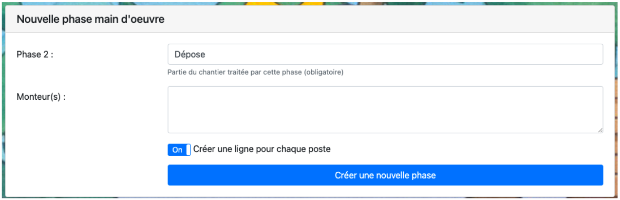 Si l’option Créer une ligne pour chaque poste est activée, la nouvelle phase est automatiquement alimentée avec les lignes du devis non encore entièrement affectées à une autre phase.