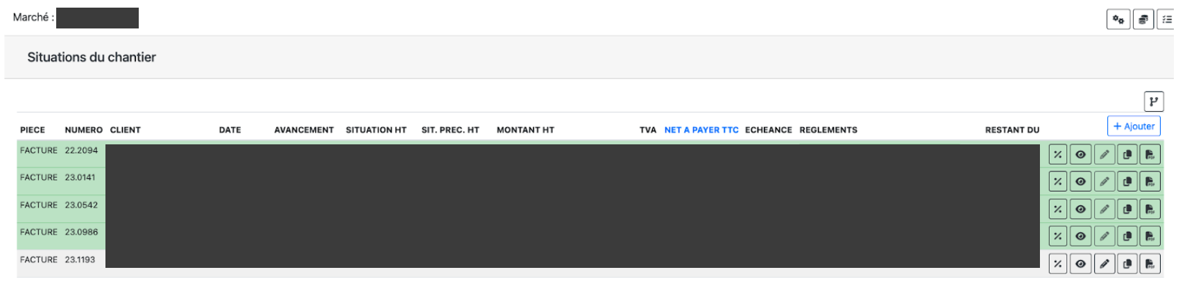 Cette vue permet de suivre précisément la situation financière de l’affaire, indépendamment des autres chantiers du client.