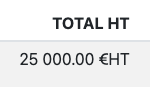 Exemple ici : 50 (Quantité) x 500 (Prix unitaire) = 25 000 (Total HT)