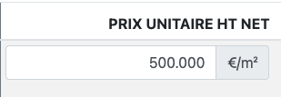 Correspond au prix unitaire hors taxes net, exprimé en €/m² (ou autre unité selon le produit).