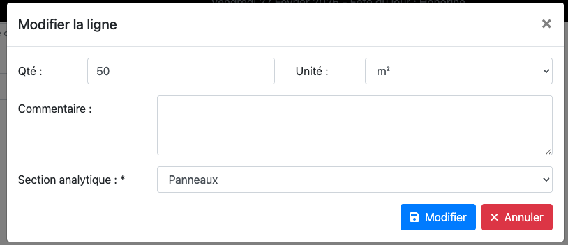 Ouvre une fenêtre modale de modification permettant de :