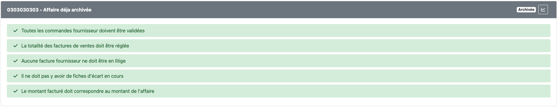 Dans certains cas (anciens projets notamment), une affaire peut dĂ©jĂ ĂȘtre archivĂ©e :