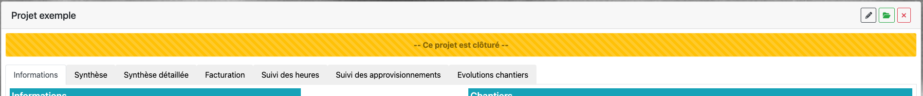 - La liste des affaires (chantiers) rattachées au projet,