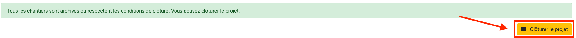Depuis le tableau de bord du projet, cliquez sur le bouton ClĂŽturer le projet.
