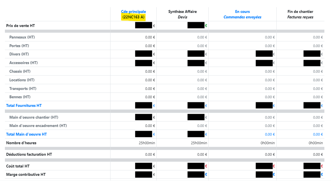 Le tableau de bord dâune affaire centralise lâensemble des informations liĂ©es Ă une affaire : suivi financier, budgets, heures estimĂ©es et rĂ©partition analytique.
