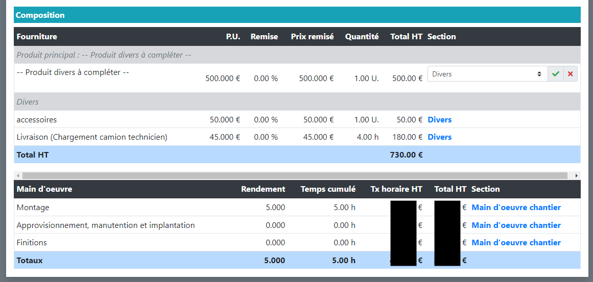 les budgets de main dâĆuvre renseignĂ©s dans les fournitures des postes.