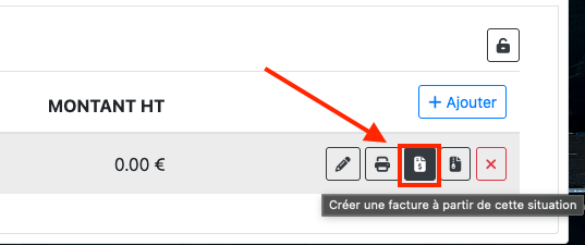 Depuis cette page ou depuis l’onglet Situations d’un chantier, cliquez sur Créer une facture.
