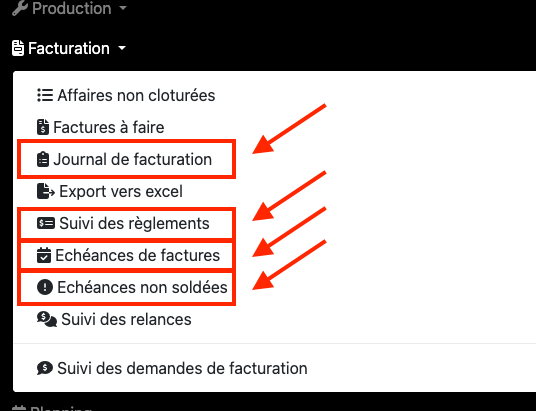 Elephant met à disposition plusieurs écrans permettant de suivre les factures, les règlements et les échéances.
