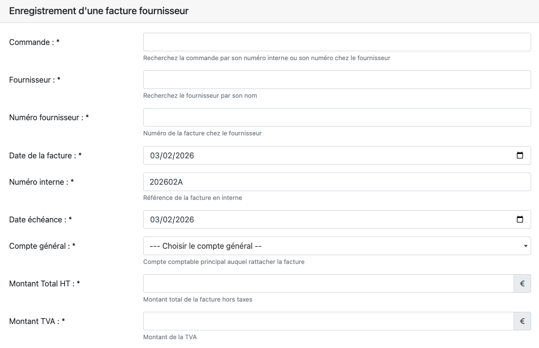 Vous devez d’abord indiquer la commande fournisseur concernée,