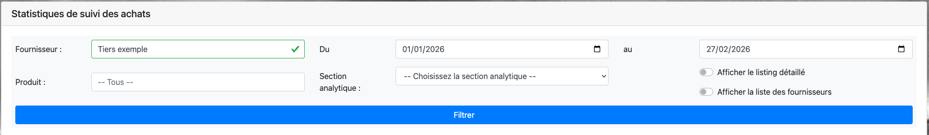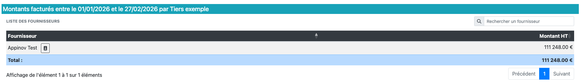 La partie Statistiques permet d’analyser les montants facturés chez un fournisseur sur une période donnée.