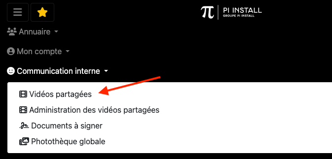 La page avec les vidéos partagées est accessible depuis le menu principal.