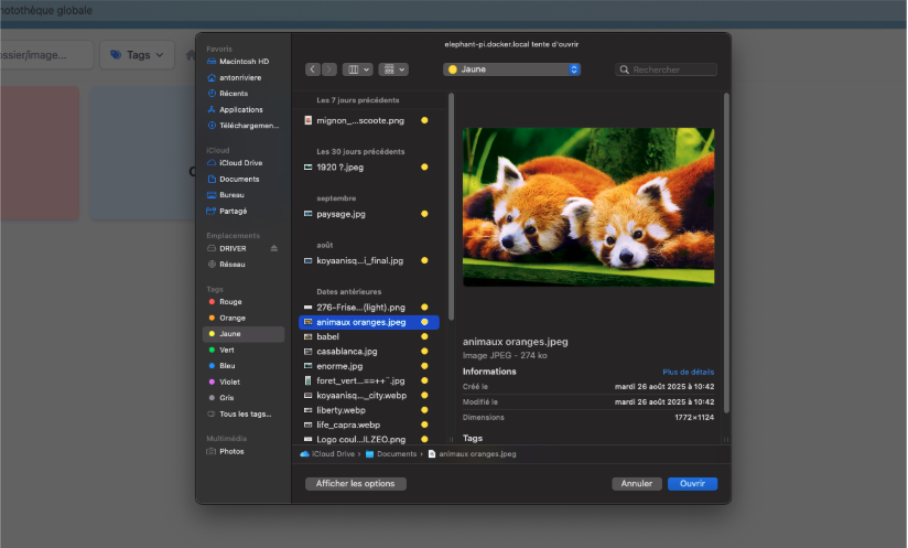 En cliquant sur le bouton Ajouter des photos, l’explorateur de fichiers de l’ordinateur s’ouvre et permet de sélectionner une ou plusieurs images à importer simultanément.