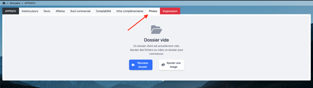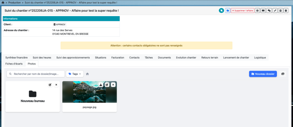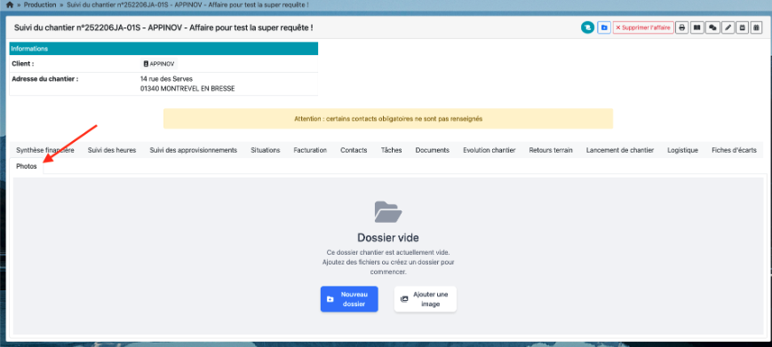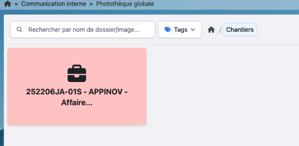 Les dossiers Chantier et Client ne sont pas créés manuellement depuis la photothèque globale.