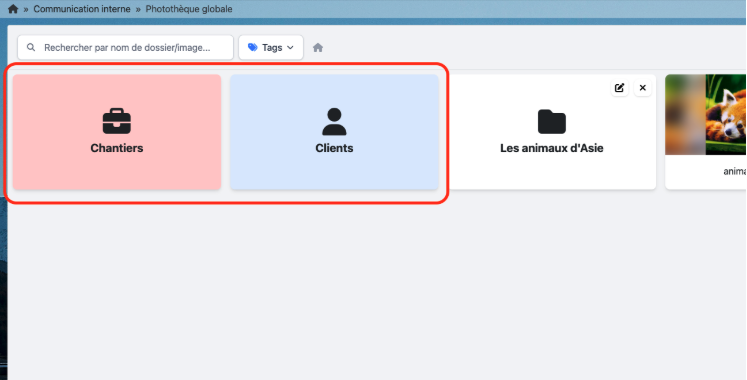 👉 Les dossiers correspondants apparaissent automatiquement dans la photothèque globale, dans le dossier primordial associé.