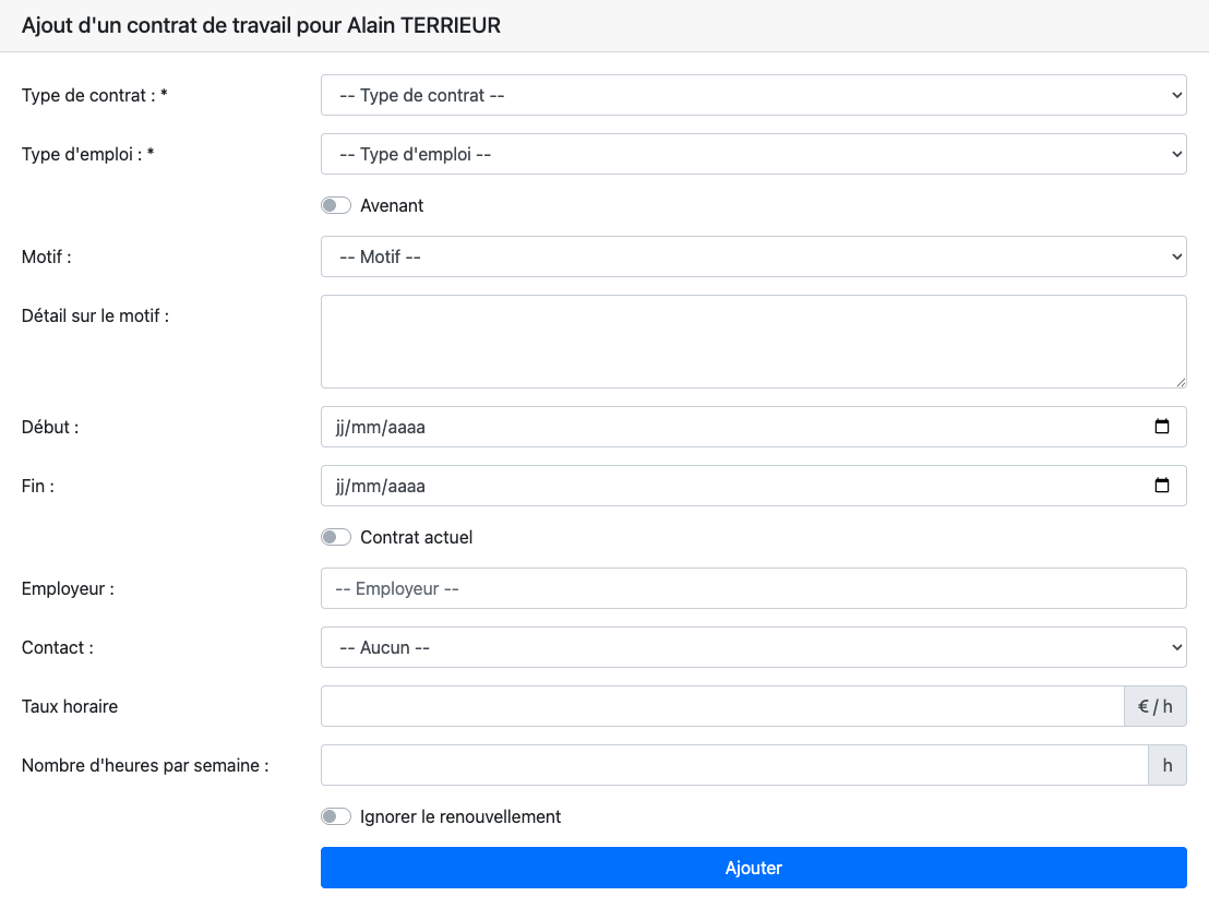 Cliquez sur Ajouter pour enregistrer un contrat.