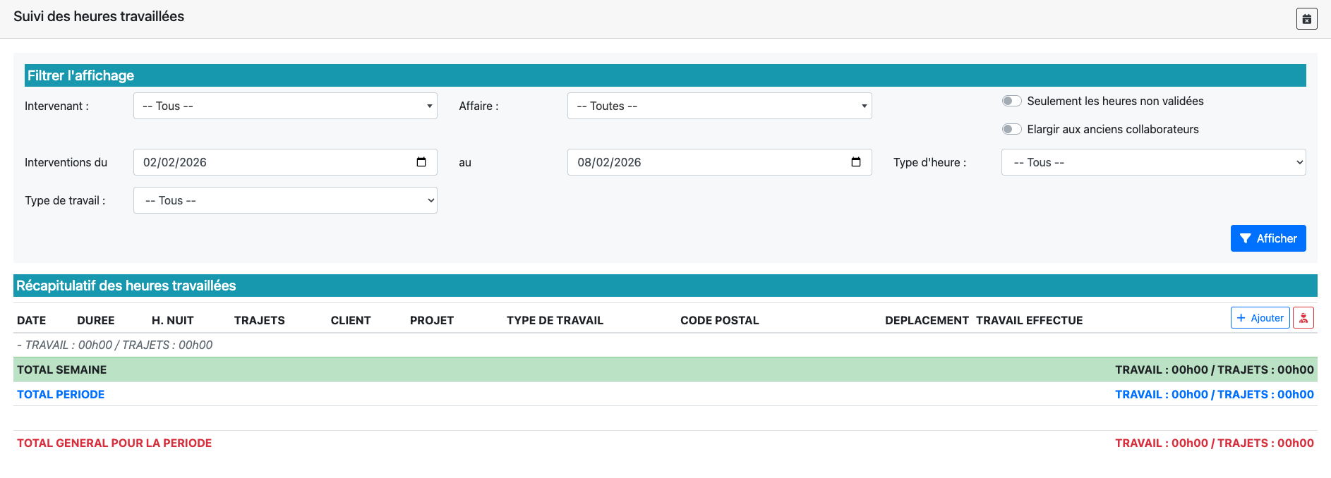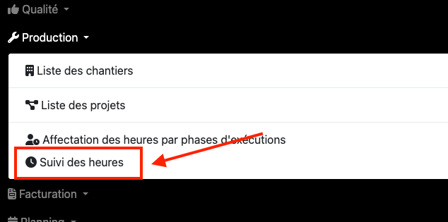 Les heures sont saisies par les collaborateurs puis validées depuis :