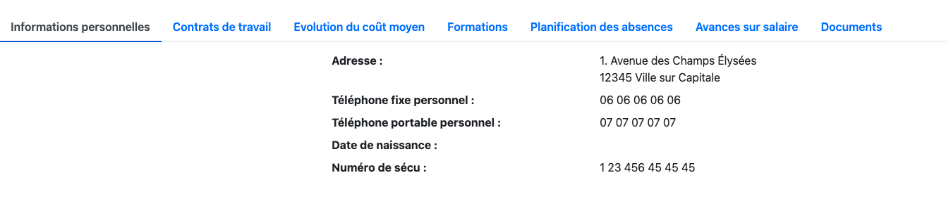 Depuis la fiche collaborateur, cliquez sur Informations personnelles.