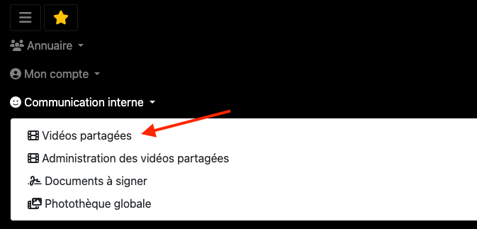 La page avec les vidéos partagées est accessible depuis le menu principal.