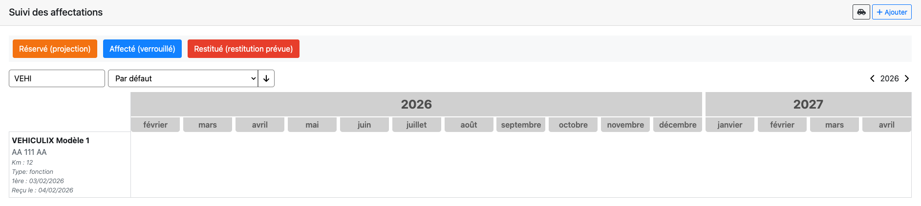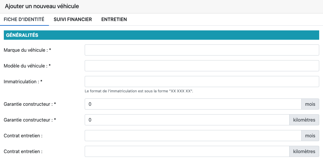 Cliquez sur Ajouter pour créer un nouveau véhicule.